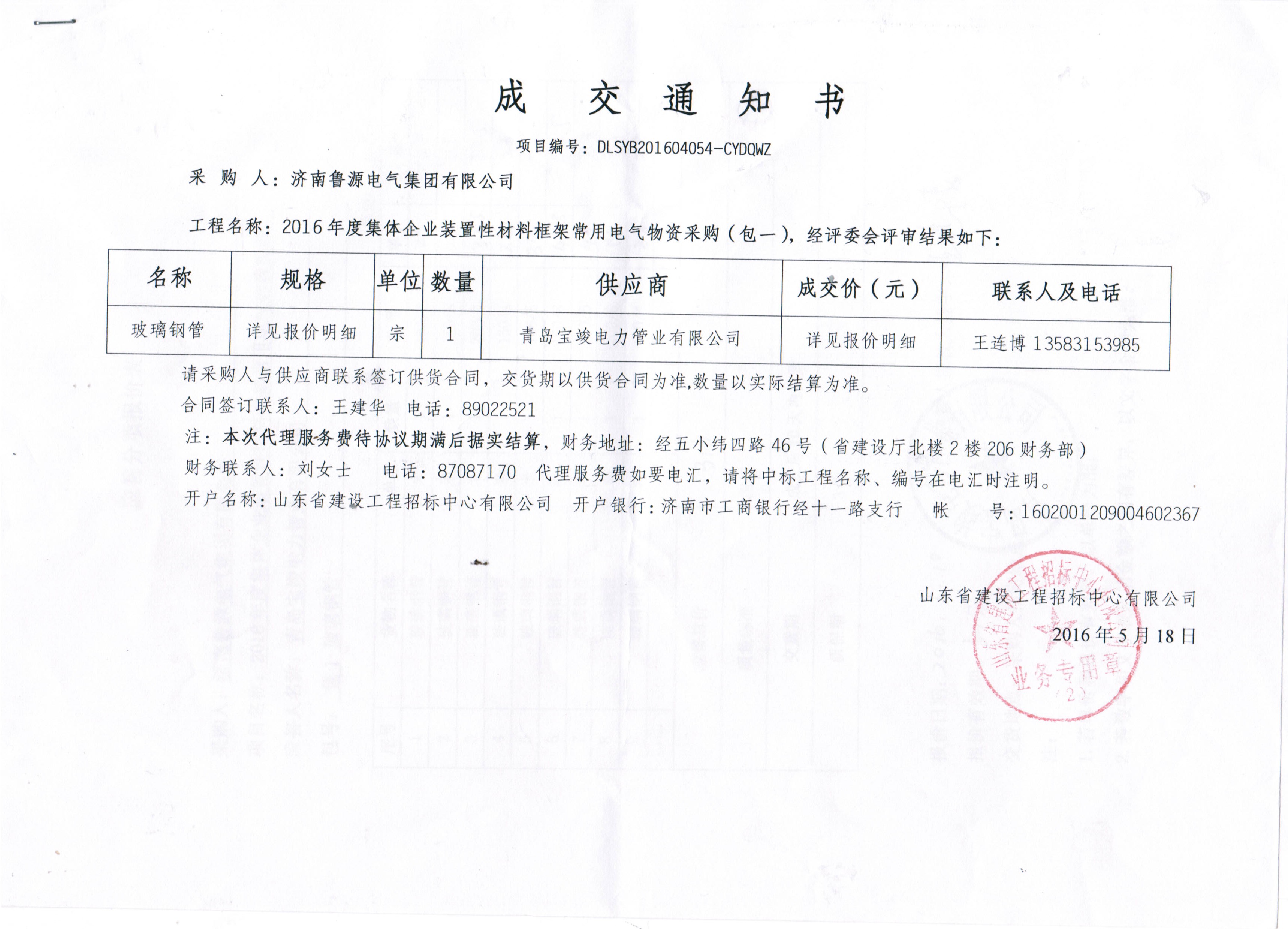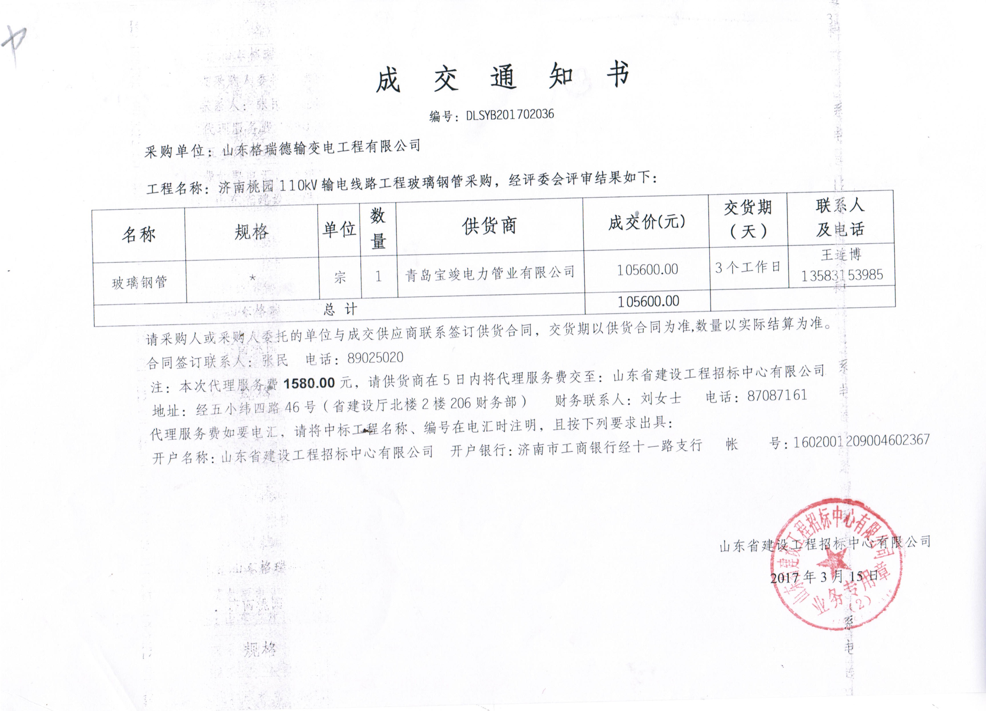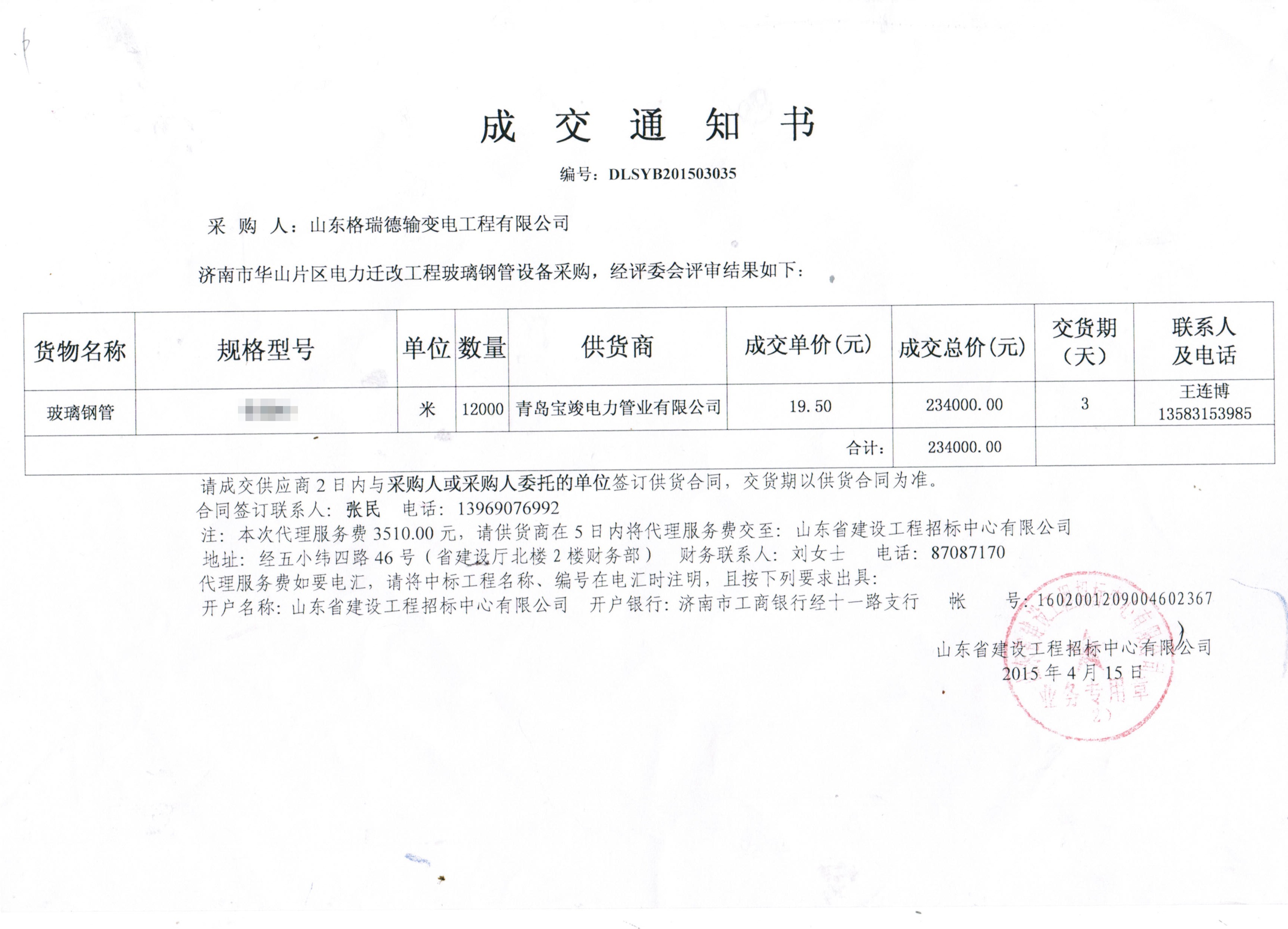 山東格瑞德輸變電工程有限公司玻璃鋼設備采購