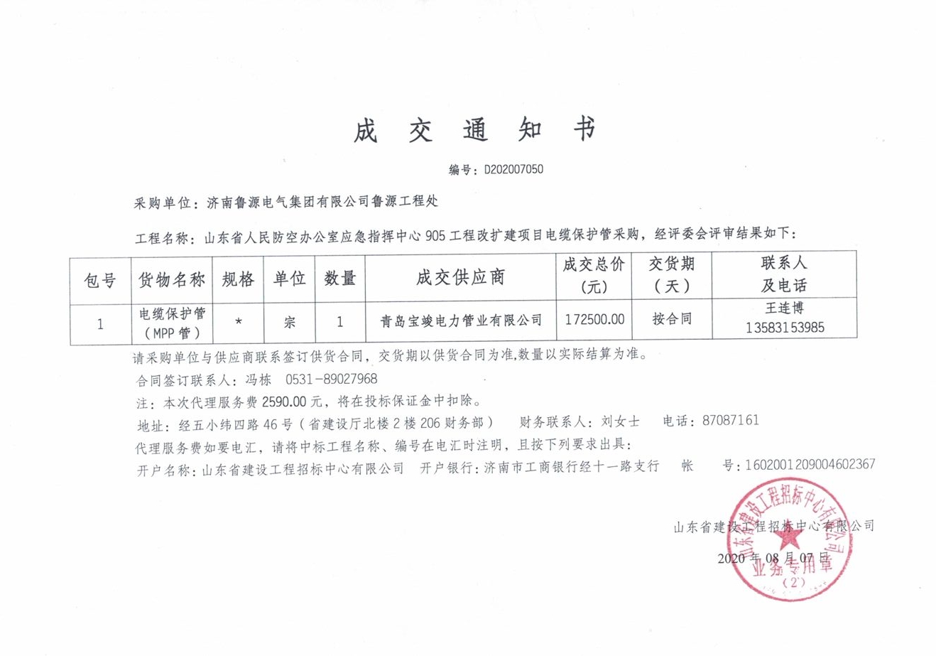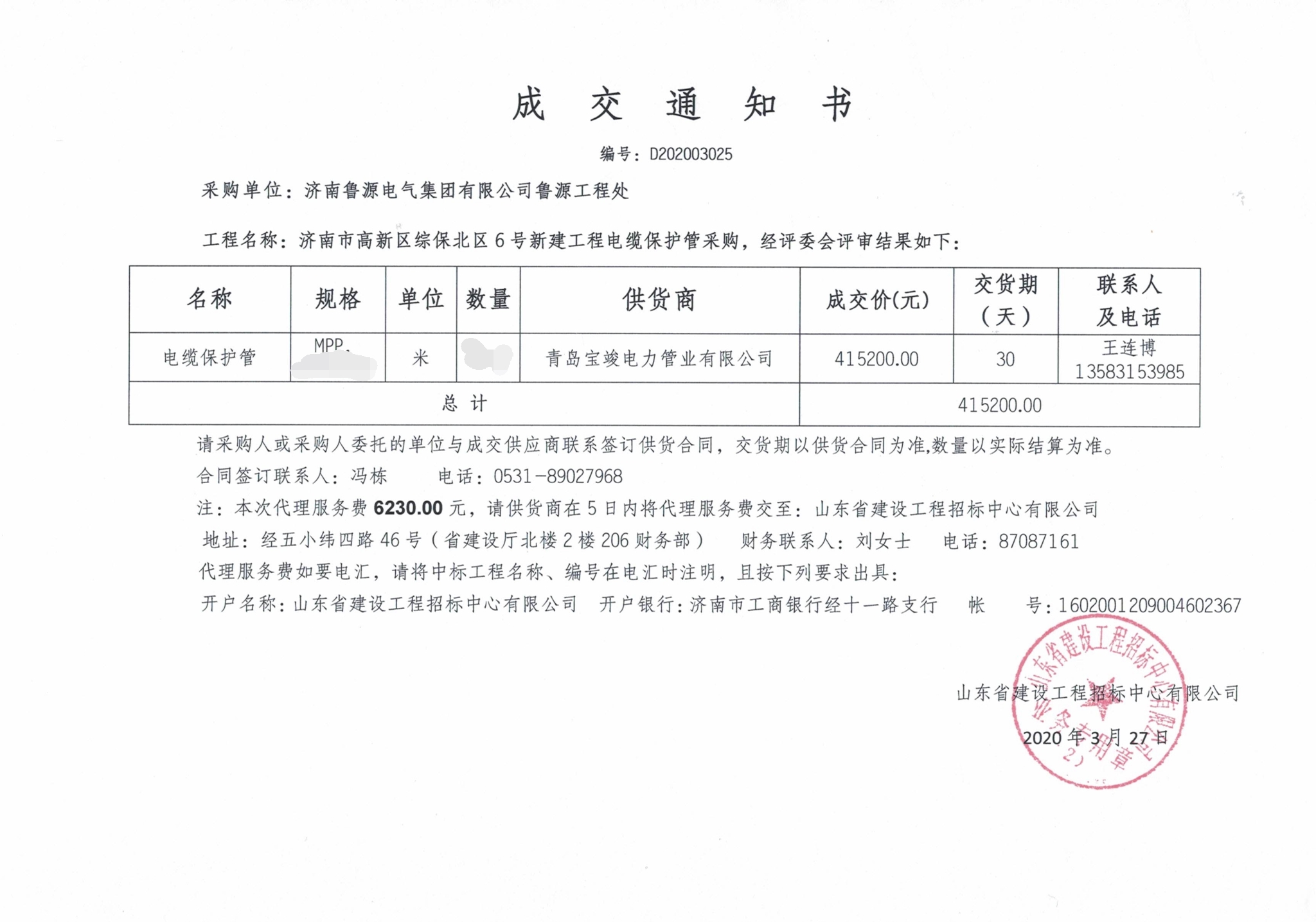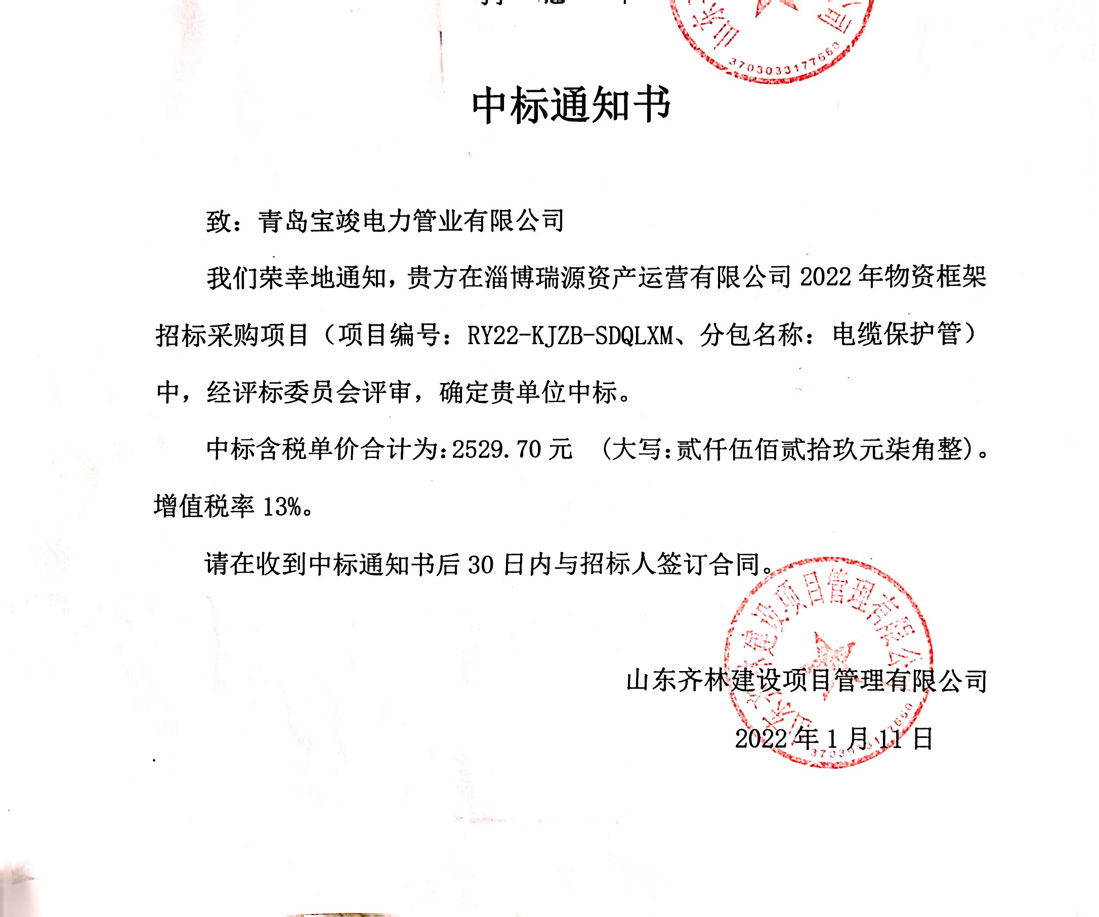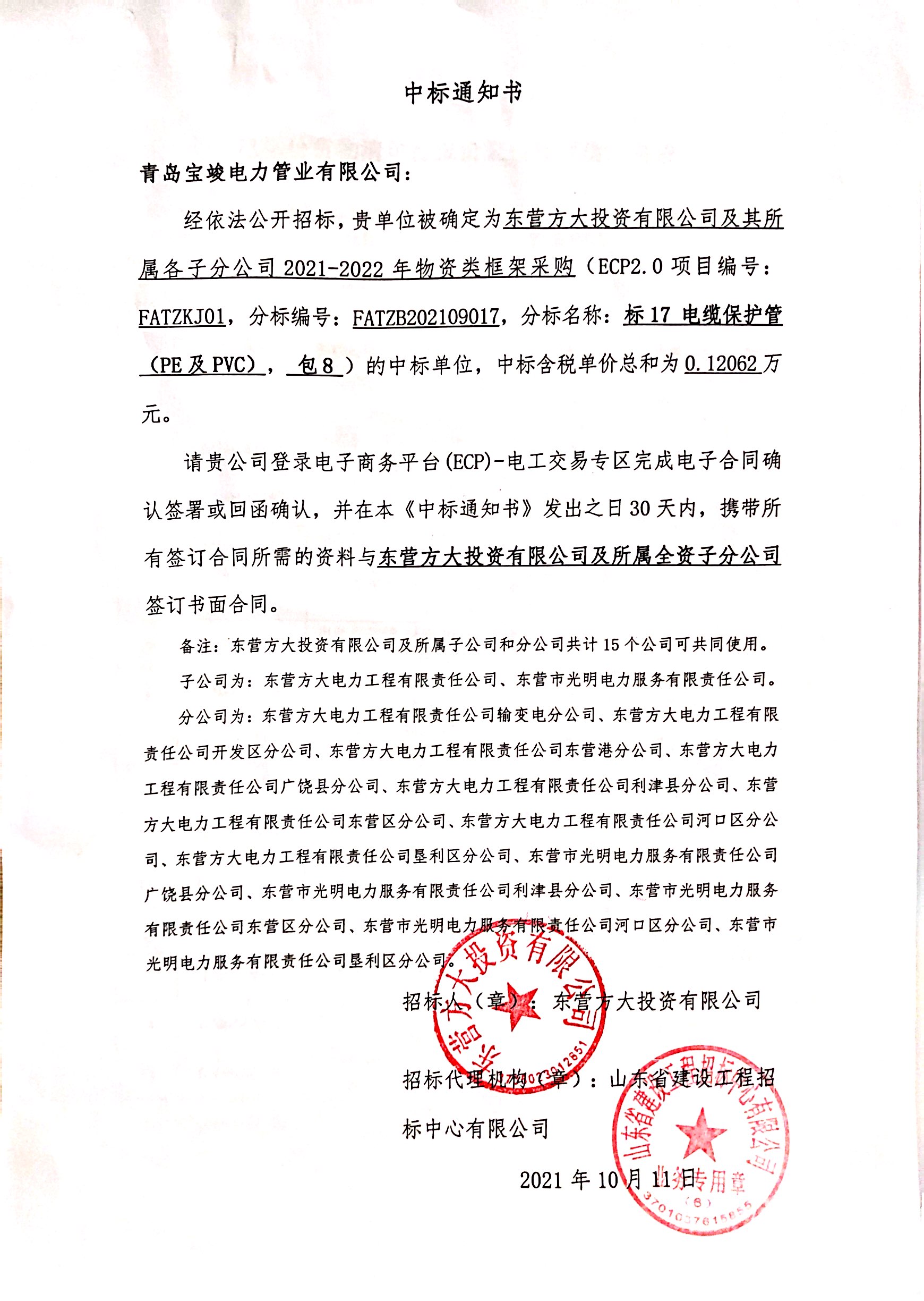 煙臺東源 2022年六月東源投資電纜保護管入圍電商框架公開招標