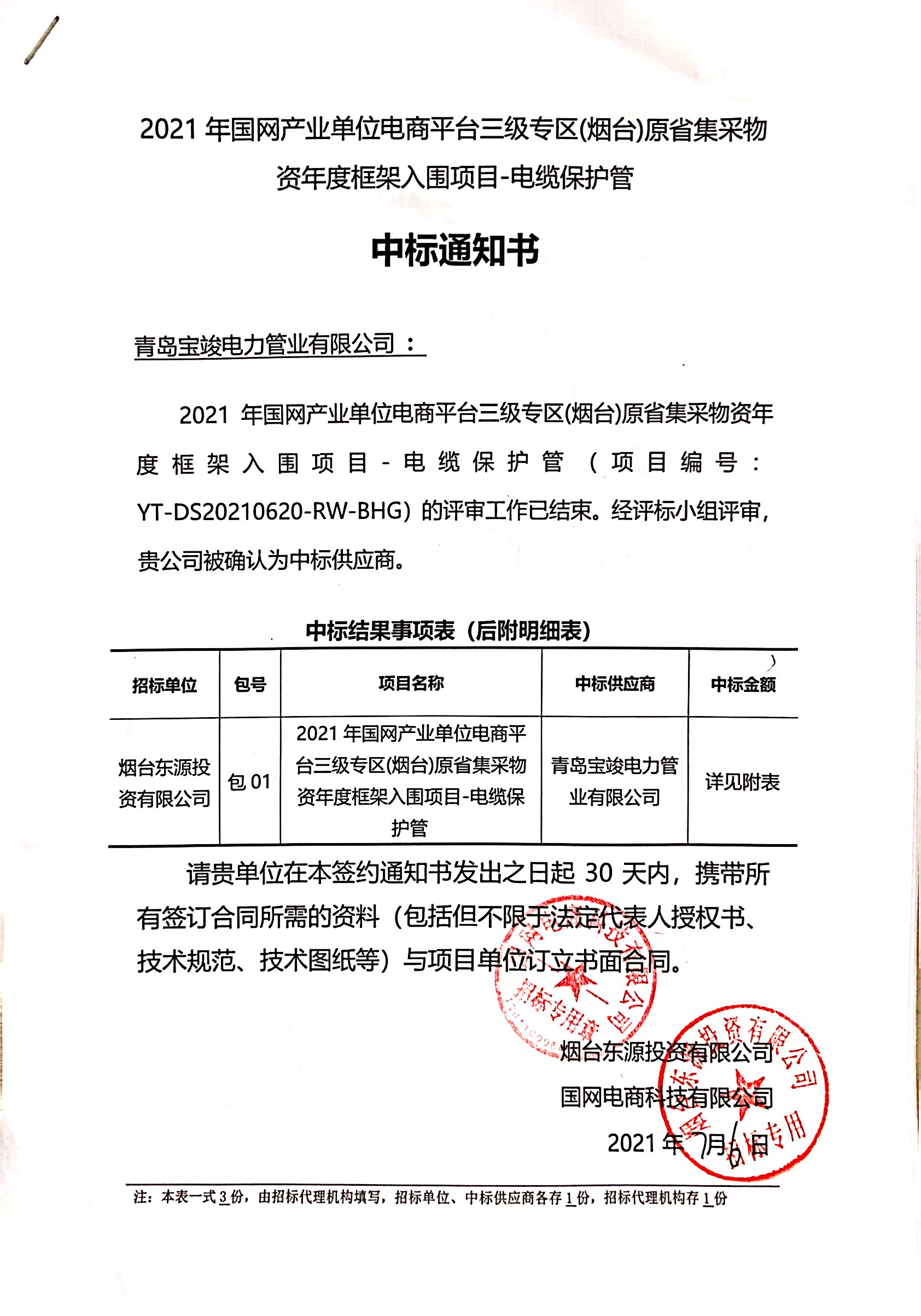 2021年國網產業單位電商平臺三級專區(煙臺)原省集采物資年度框架入圍項目-電纜保護管