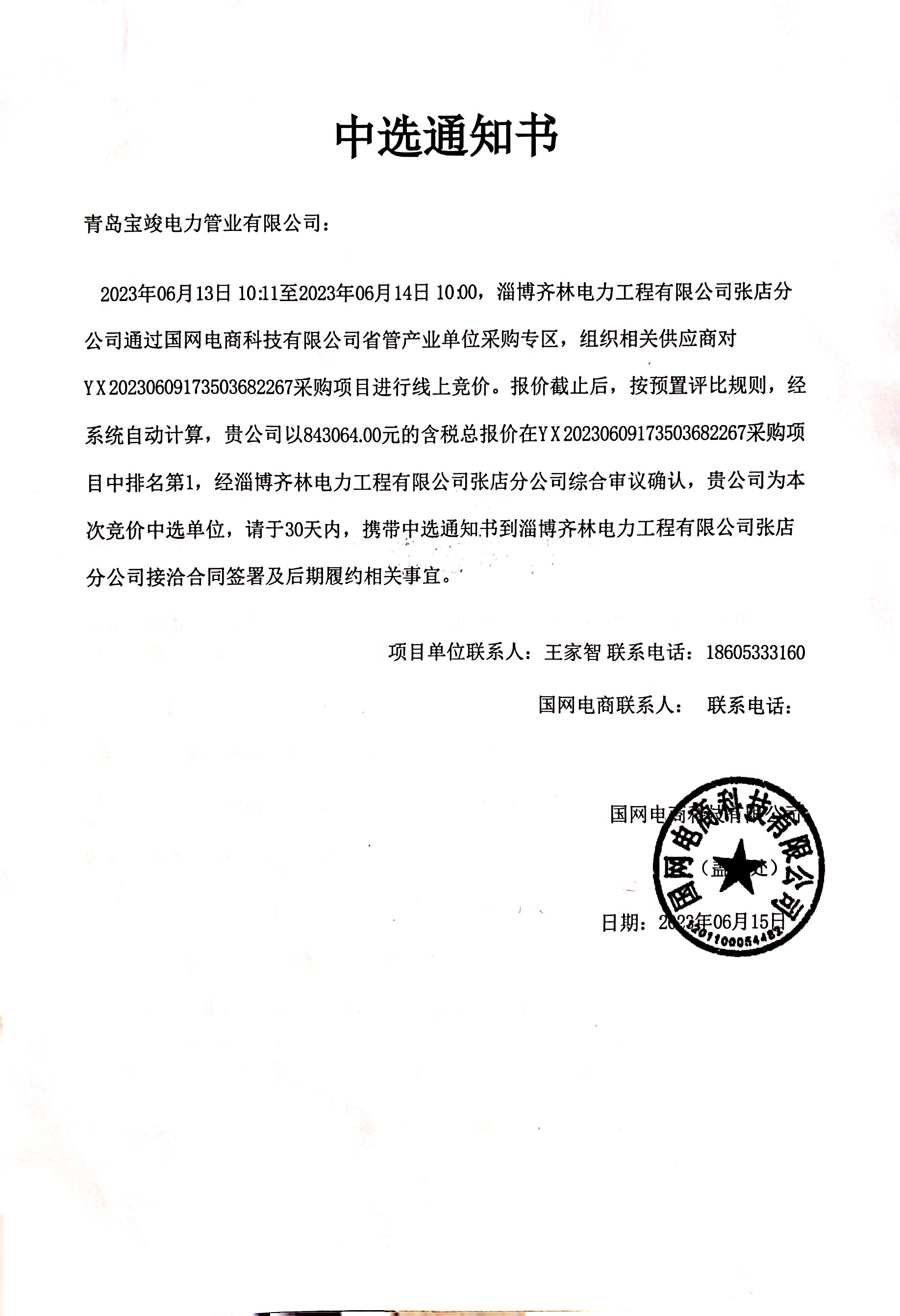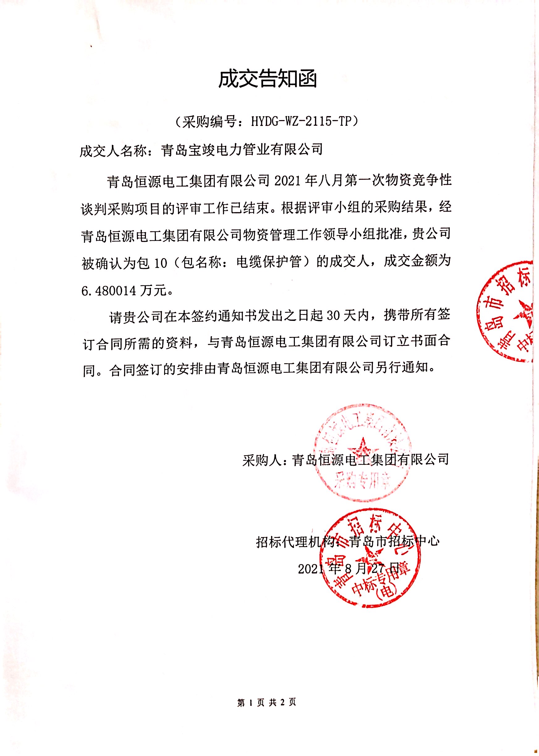 華德電力公司 2023 年度電纜保護管框架協議采購入圍通知書-10